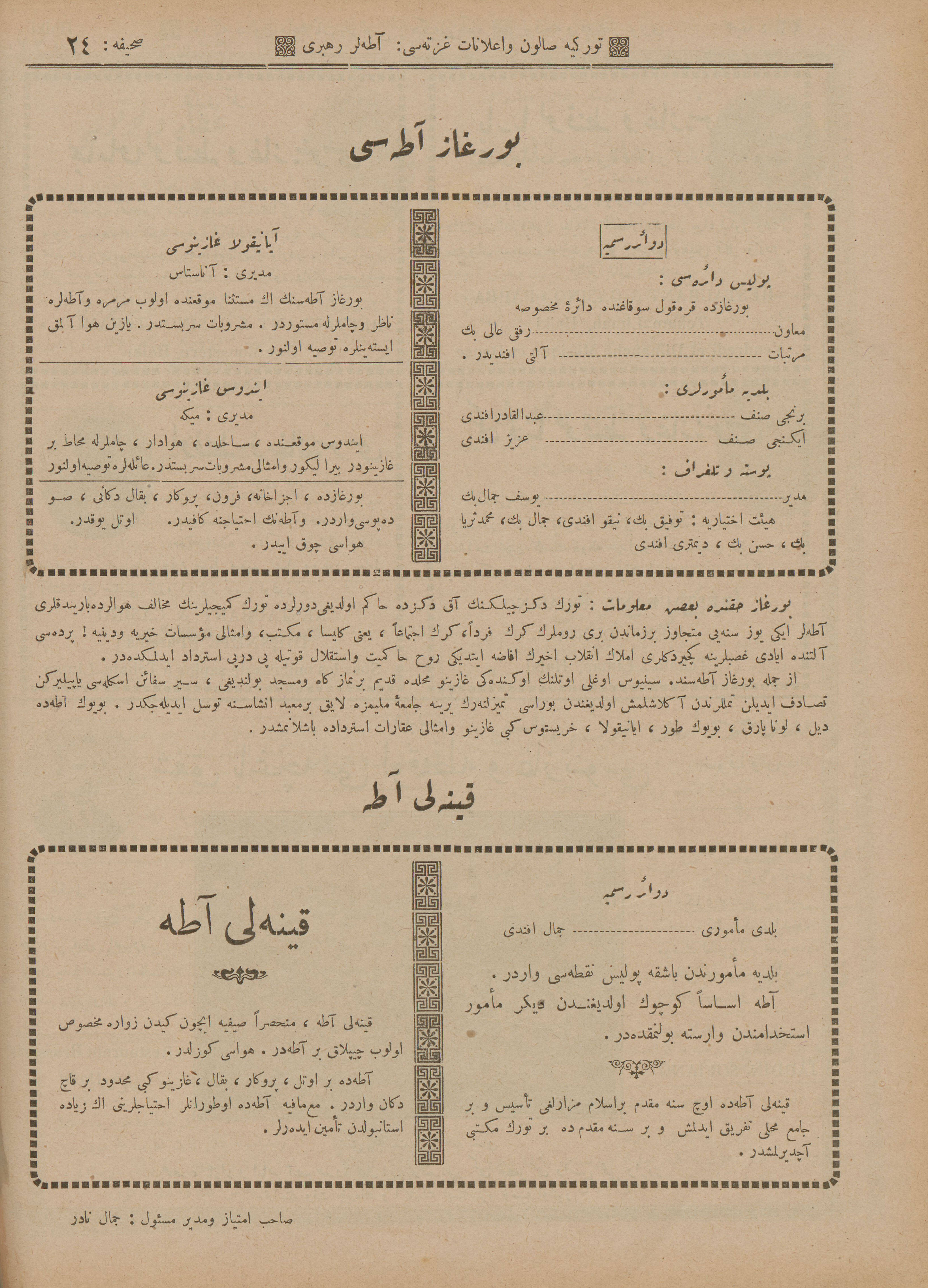 Türkiye Salon ve İlanat Gazetesi 1341 (1925) Adalar Ticaret Rehberi Burgazadası Kısmı sf.24