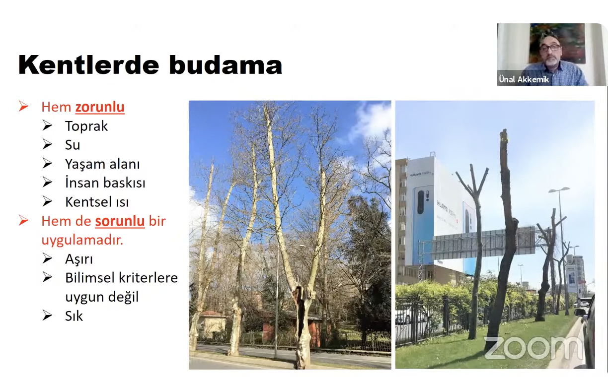 İstanbul Üniversitesi-Cerrahpaşa Orman Fakültesi, Orman Mühendisliği, Orman Botaniği Ana Bilim Dalı başkanı Prof. Dr. Ünal Akkemik’in “Ağaç Budama Sorunları ve Öneriler” başlıklı seminerini dinlemeniz ve dinletmeniz hiç değilse de söz konusu seminerden aldığımız ekli yaşamsal notları mutlak surette okumanız önerisiyle…