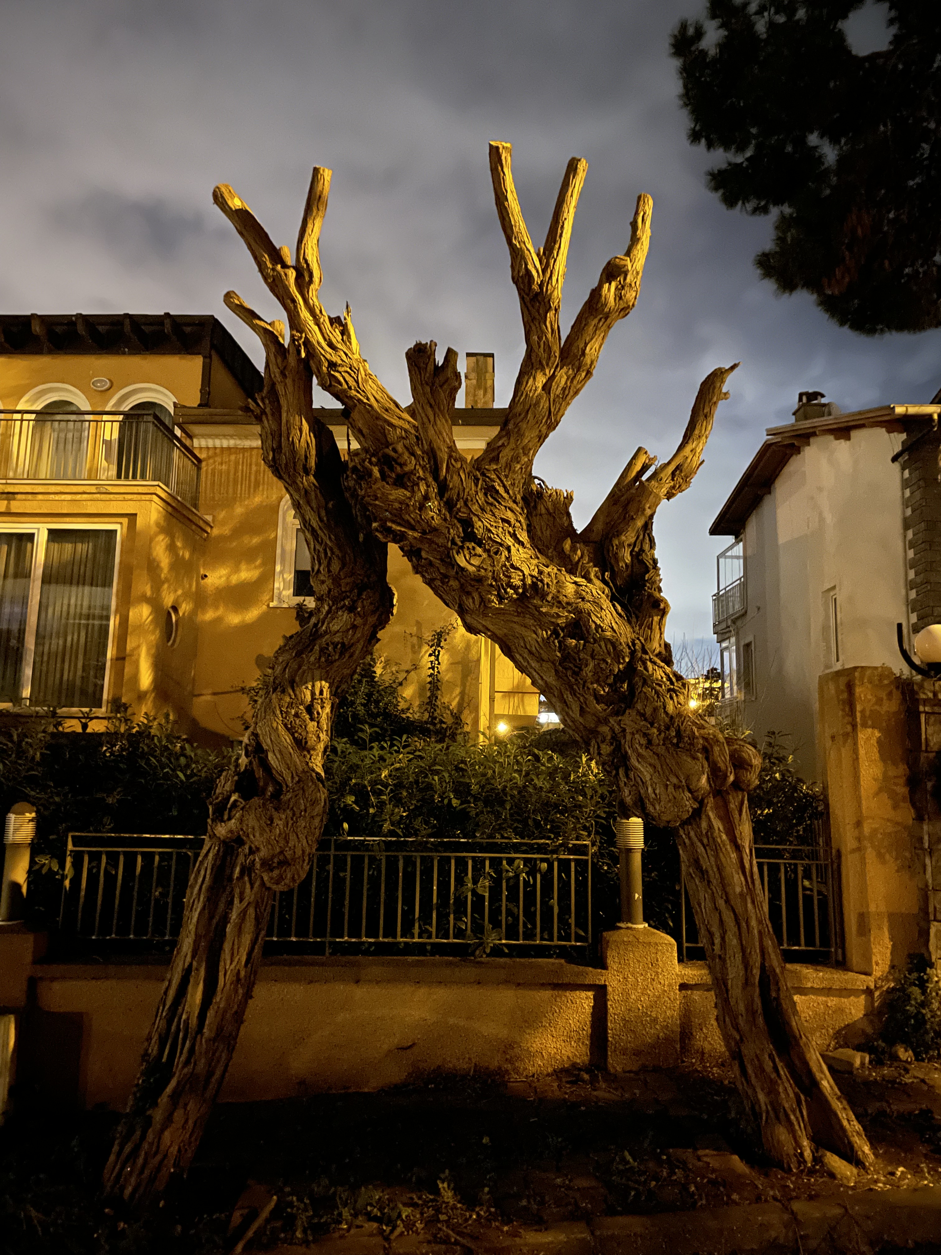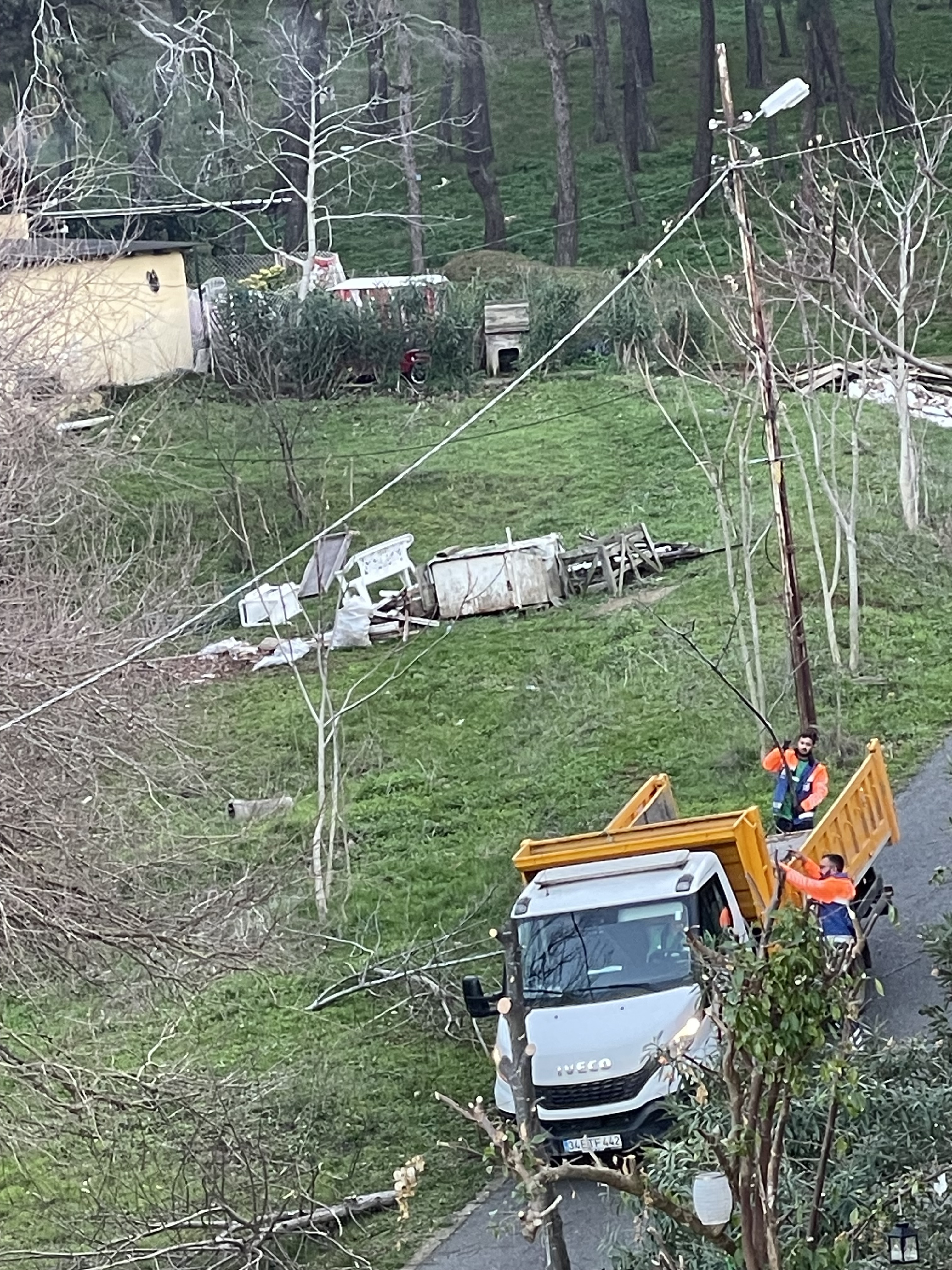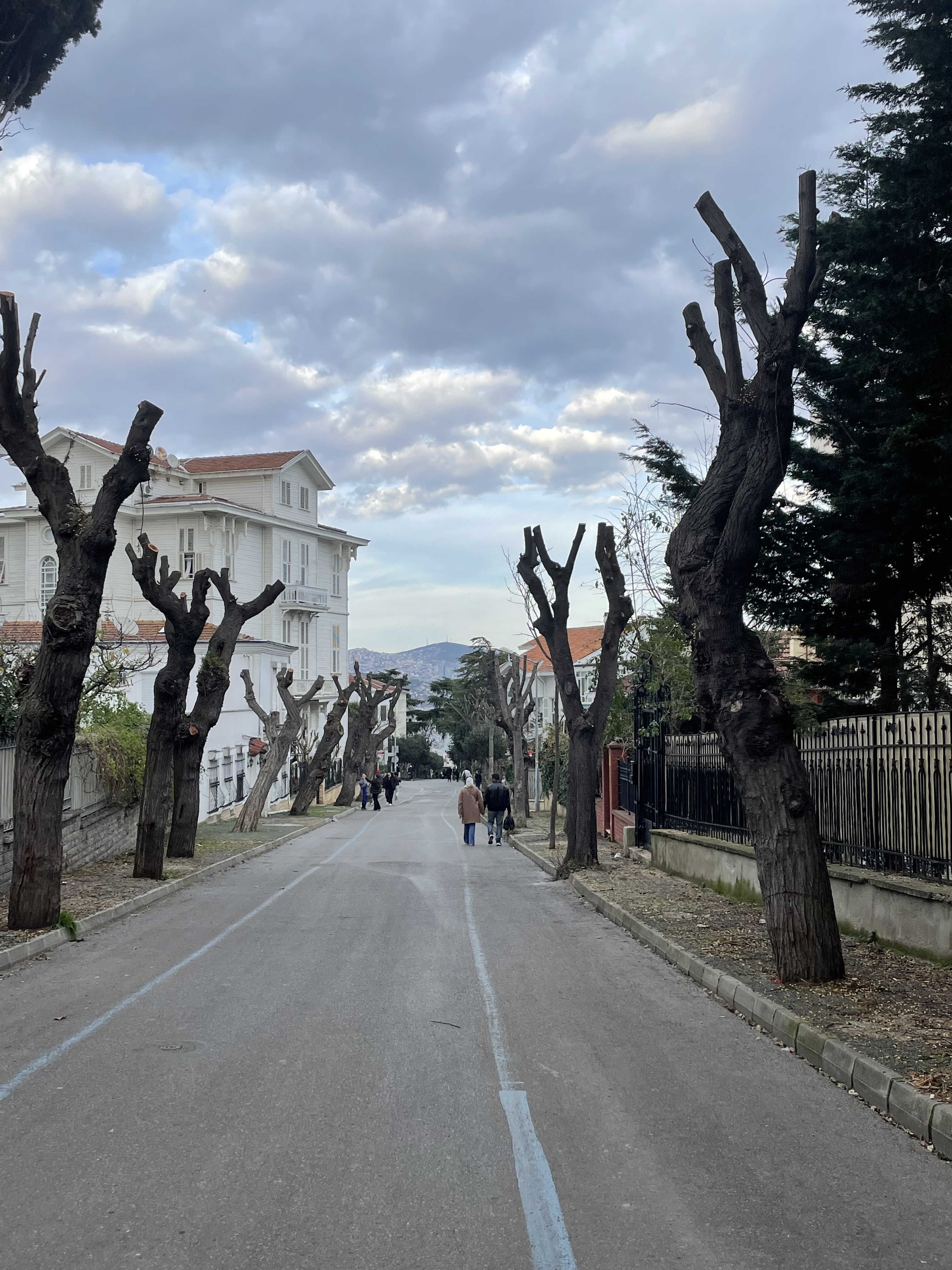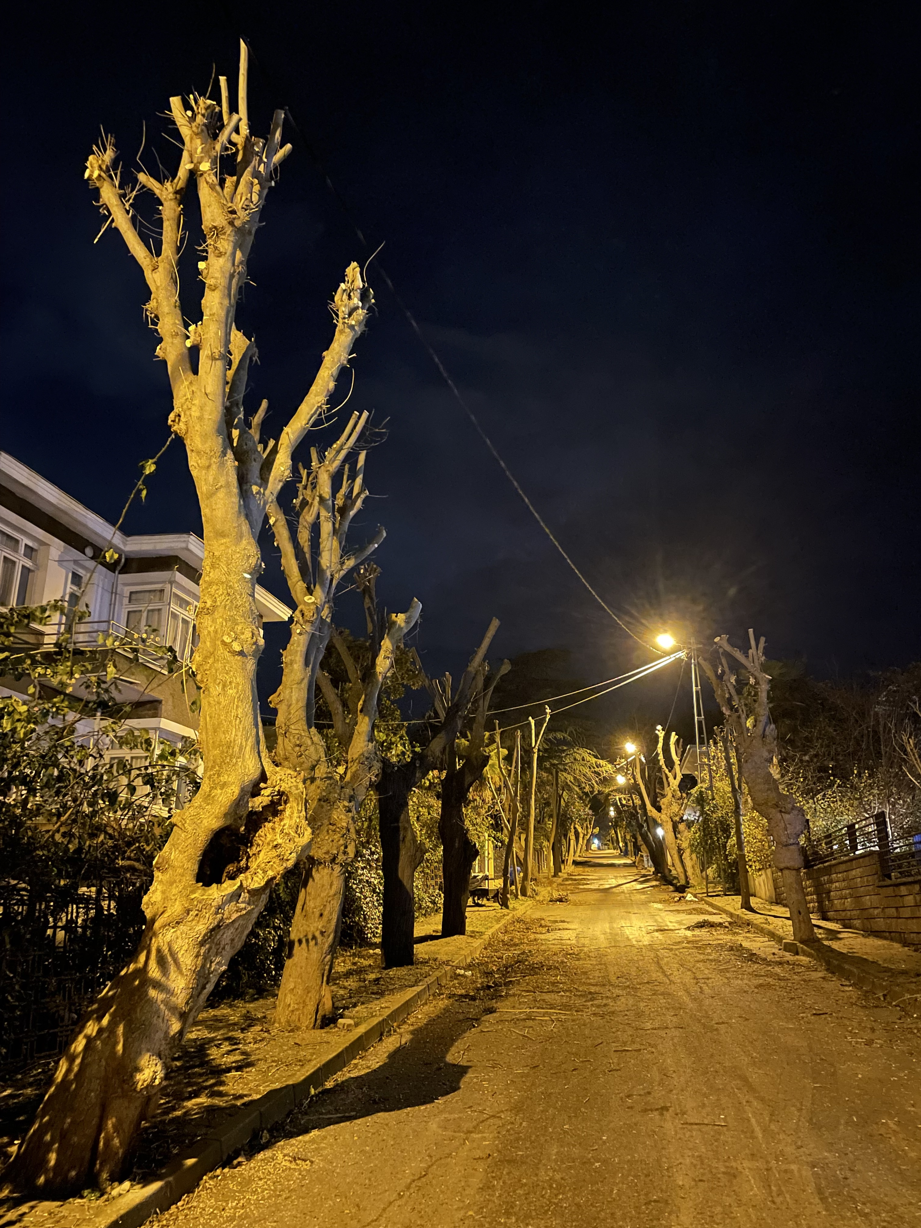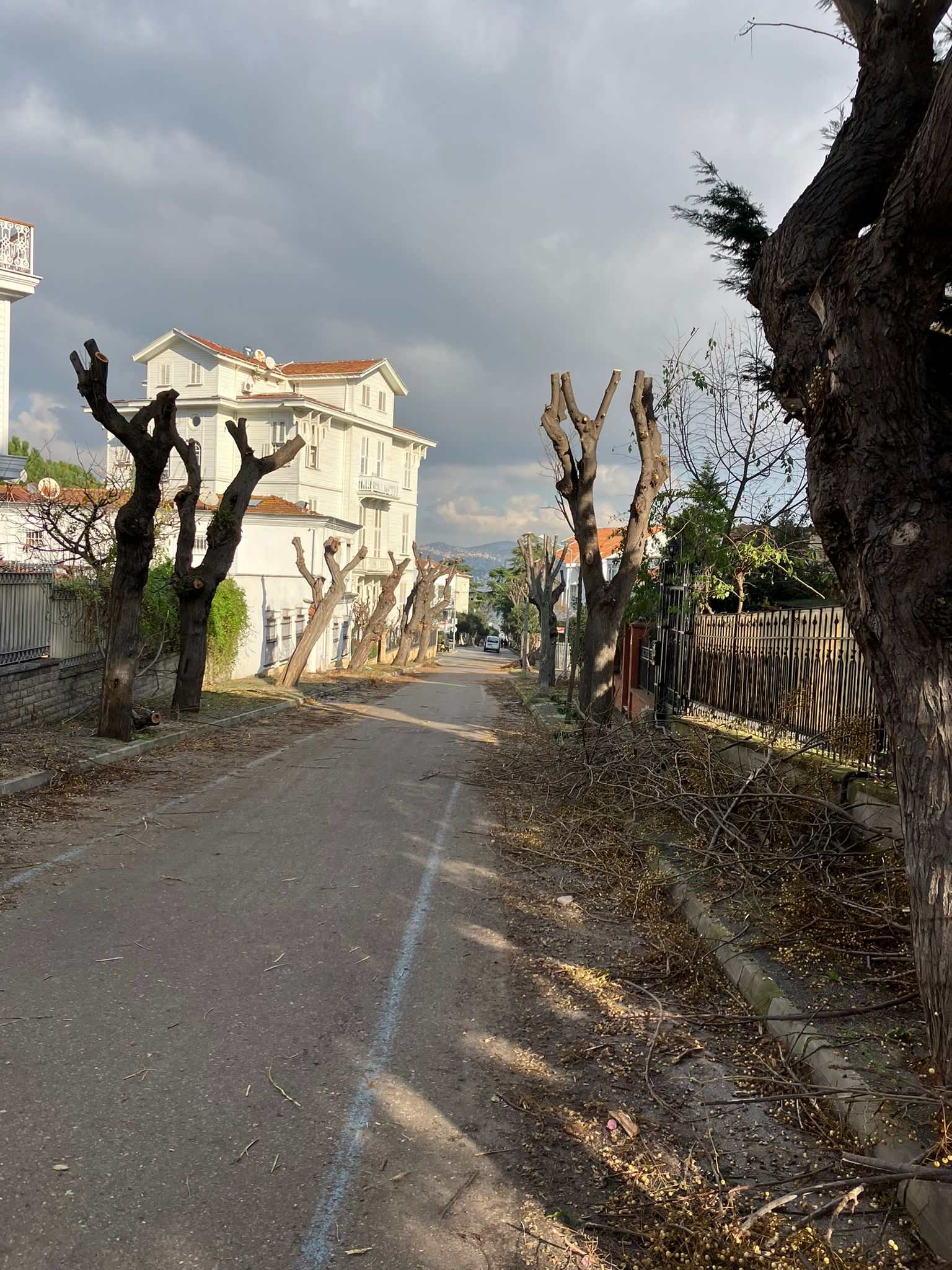 Devasa beton mikserleri geçit yaptıktan birkaç gün sonra 30 Aralık Pazartesi sabahı Büyükada’da “Yaverbey Sokağı”nın (eski isimleriyle Yaver, Yeni Yol) iki yanına vaktiyle dikilerek karşılıklı uzanan dallarının gökyüzünde birbirine kavuşmasıyla hârikulâde masalsı bir güzergâh haline gelen” hıyabana (iki tarafı ağaçlı yol) saldırarak; Yaverbey Sokağı’nın Çarkıfelek Caddesi’yle kesiştiği girişinden başladıkları budamada kestikleri dalları da yolun ağzına yığıp yolu araç ve yaya trafiğine gün boyunca tamamiyle kapadılar! 31 Aralık 2024 Salı sabahı bir kez daha hücuma geçerek tamamiyle canına okudular hıyabanın! Daha geçenlerde yol kenarlarındaki ağaçlardan alamayıp hırslarını evlerin bahçelerindeki ağaçlara da saldırıp —sadece kaldırıma uzanan uçları olsa, gerçi lüzumsuzsa da belki belki anlaşılabilir o vakit ya— ağaçların gövdesinden çıktığı yerden dallarını da son derece yanlış bir biçimde budamışlar! Bu raddede tabiata düşmanlık ne hazin! Haneye tecavüzle zarar ziyan da cabası! Nedeni, niçini, nasılı da bir hayli muamma!