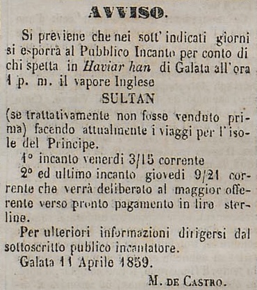 İlgilenenlerin Amerikan liman kaptanı Bay George de Giacomo’ya başvurmaları rica olunur.