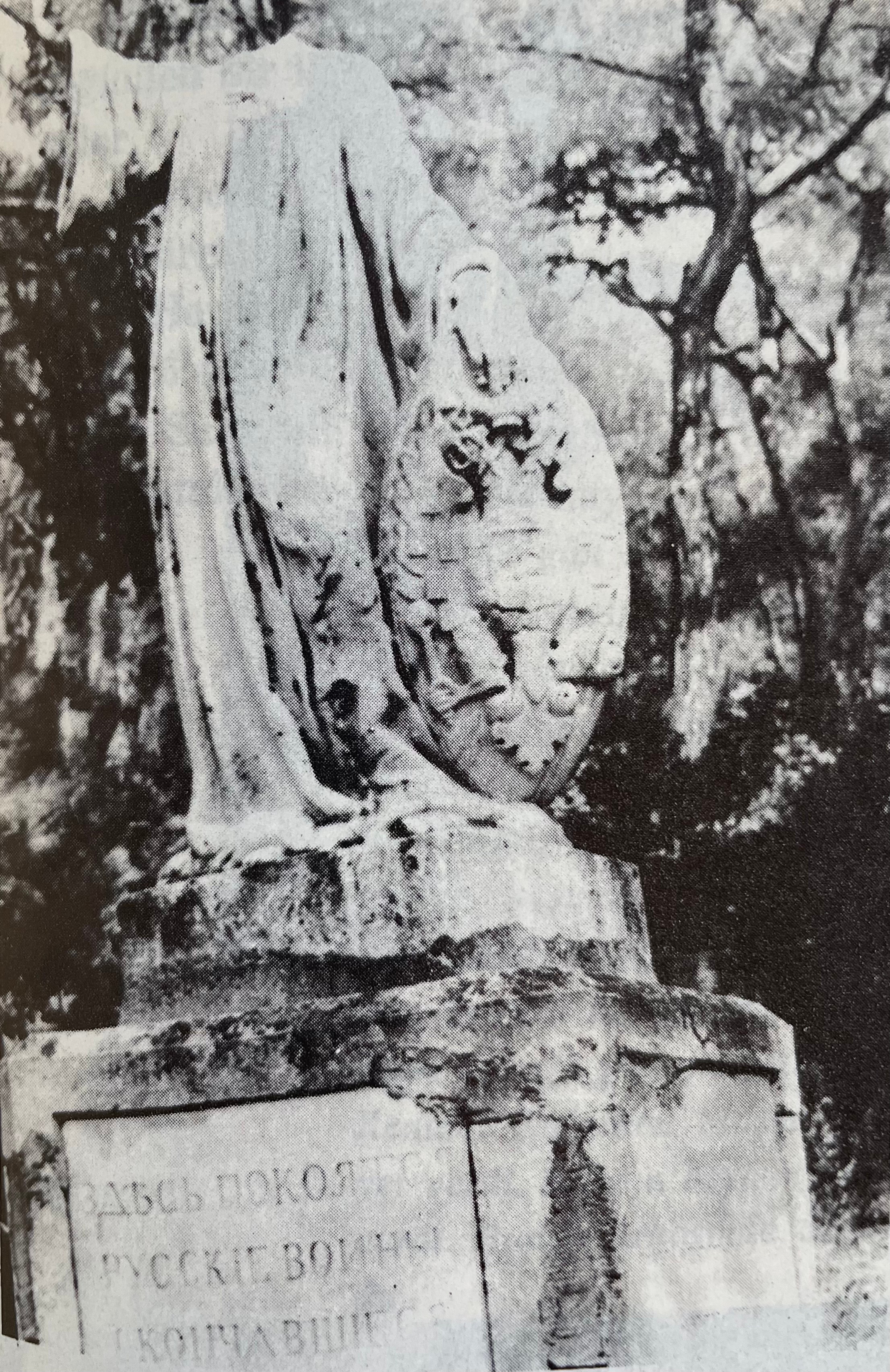 (Mezarın parmaklıklarında bulunan madeni bir levhadan anlaşıldığına göre 10-18 Mayıs 1919 senesinde Rus ordusu kumandanı general Schwarz’ın emriyle bu anıt restore edilmiştir.)