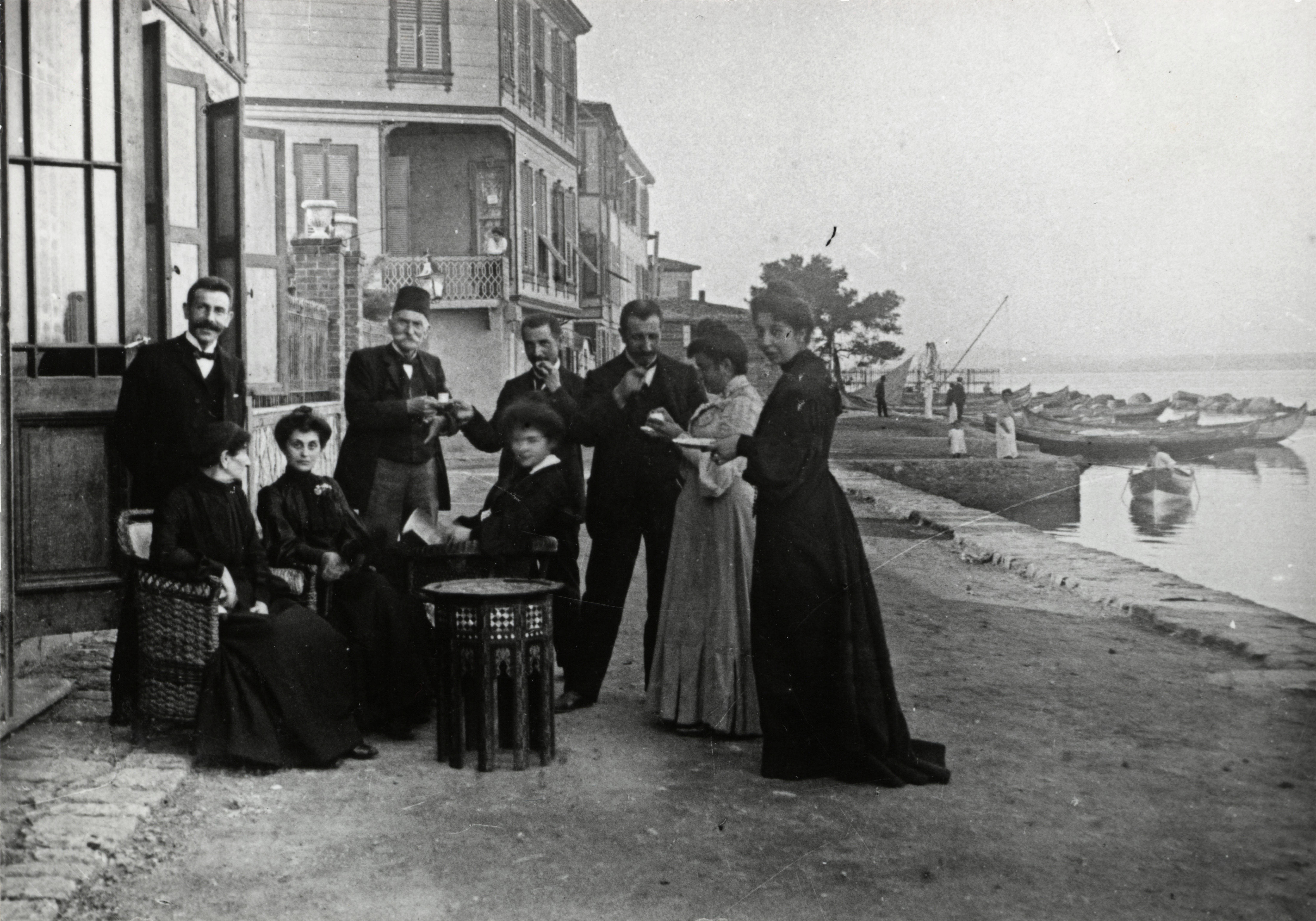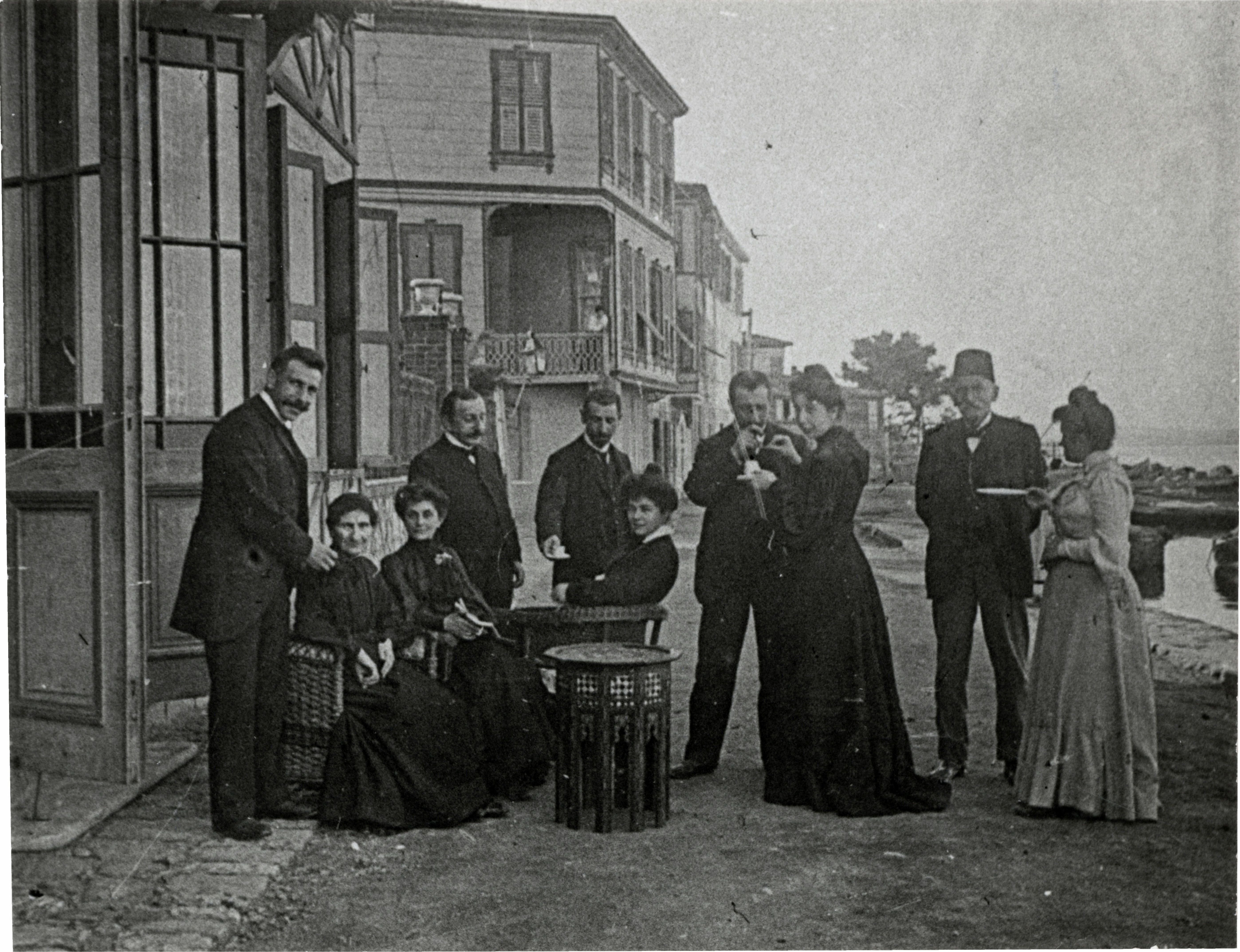 1898-1899 Büyükada Kayık Yarışları heyetinde ön sırada elinde şapkasını tutan beyaz kostümlü kişi ile Hotel Etrangers’nin verandasında aynı kostüm içerisinde eşi ve küçük kızıyla birlikte görülen kişi ve yine aynı mahalde çekilmiş bir diğer fotoğrafta eşi ve bu defa kucağındaki küçük kızıyla görülen kişinin muhtemelen Antoine Farra (1845-1921) olduğu düşüncesiyle…
