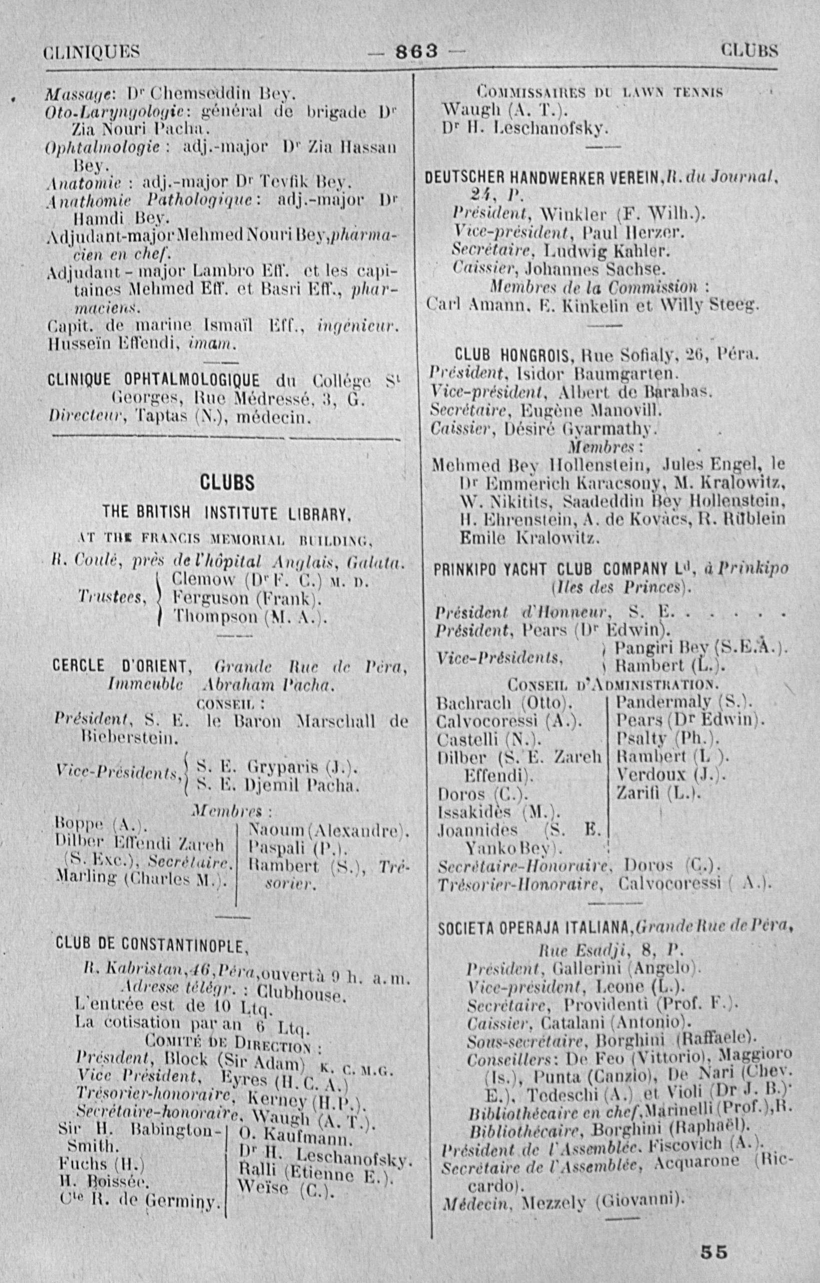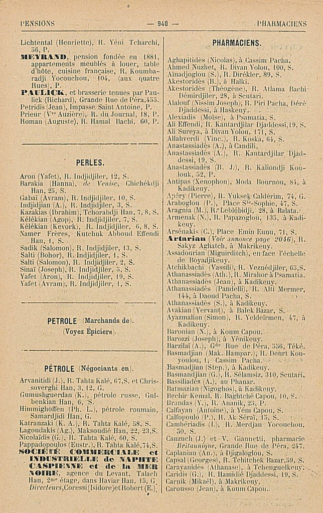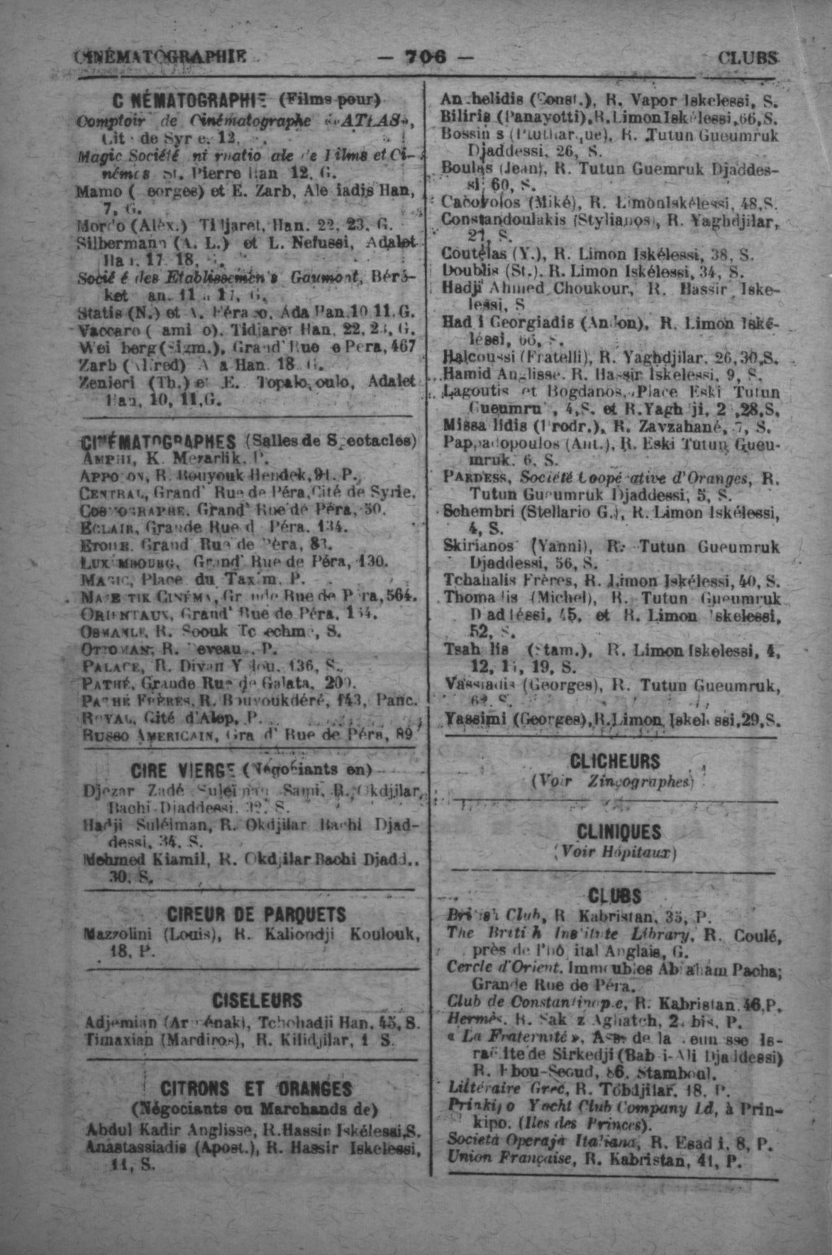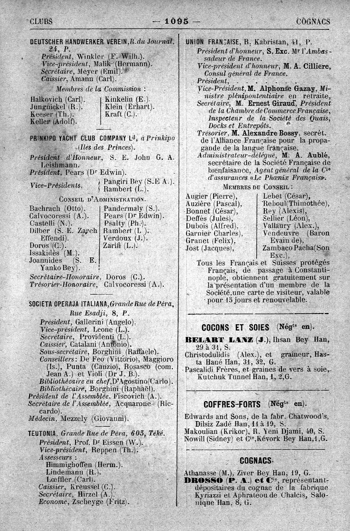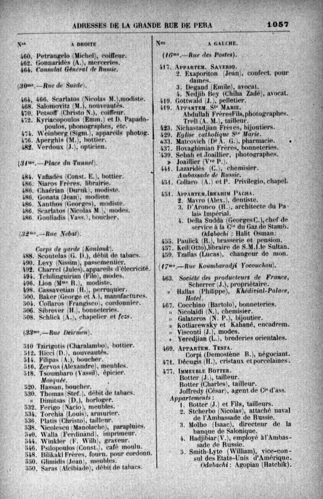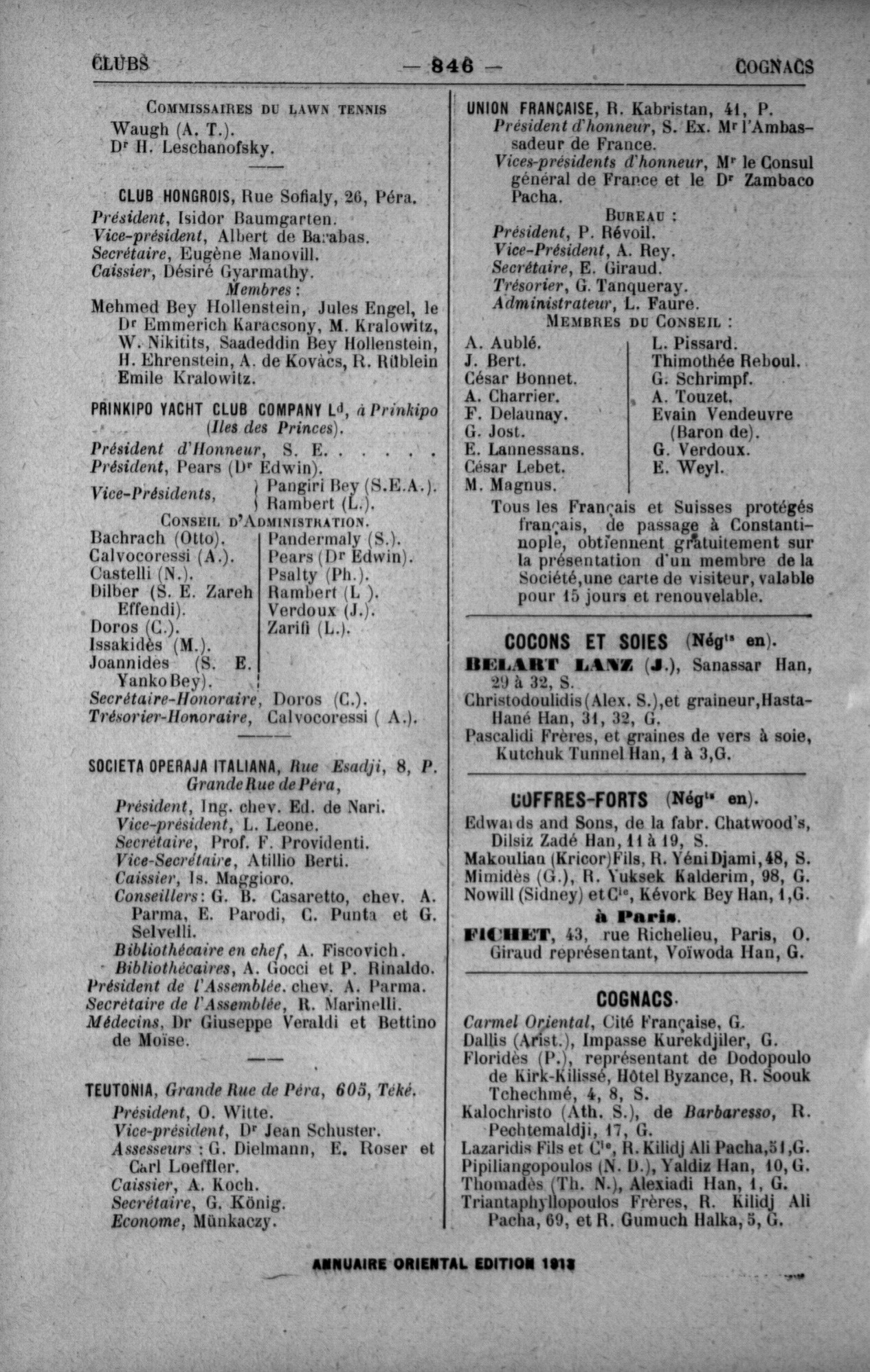 | “ | Ab. ve Lucien Matcovich | Memur | Crédit Lyonnais | Posta Sk. No. 11 Glavany Evi D. 1 Pera | |