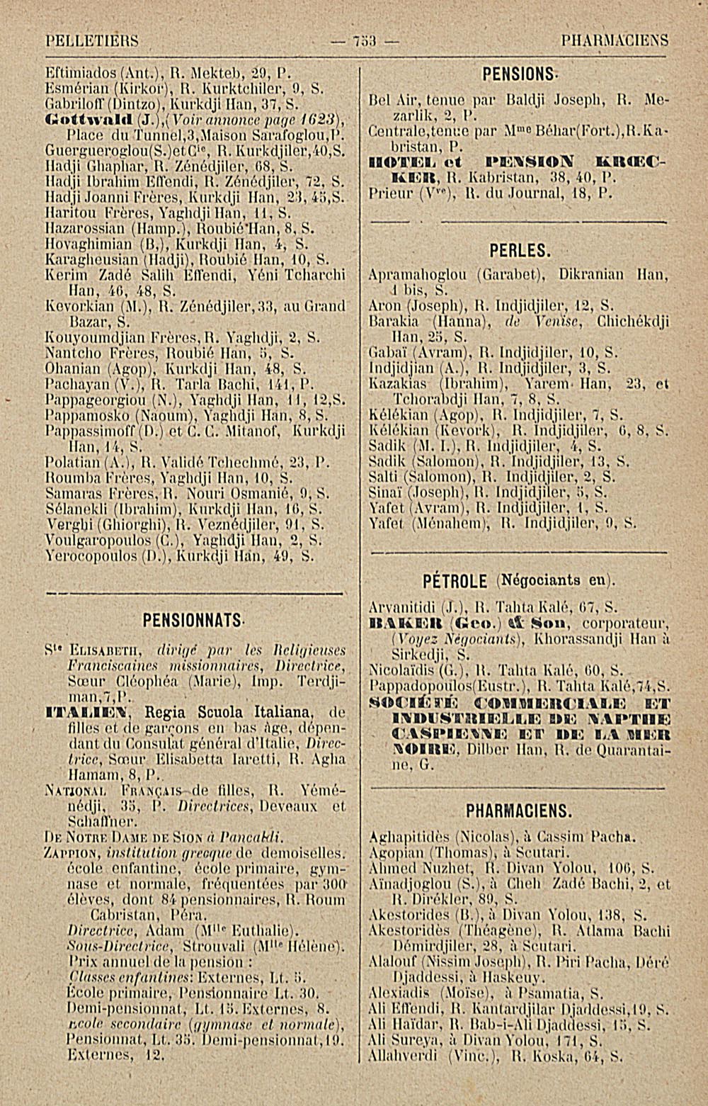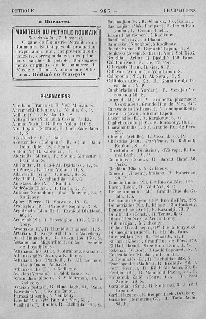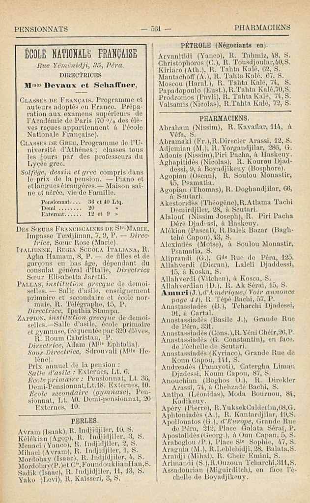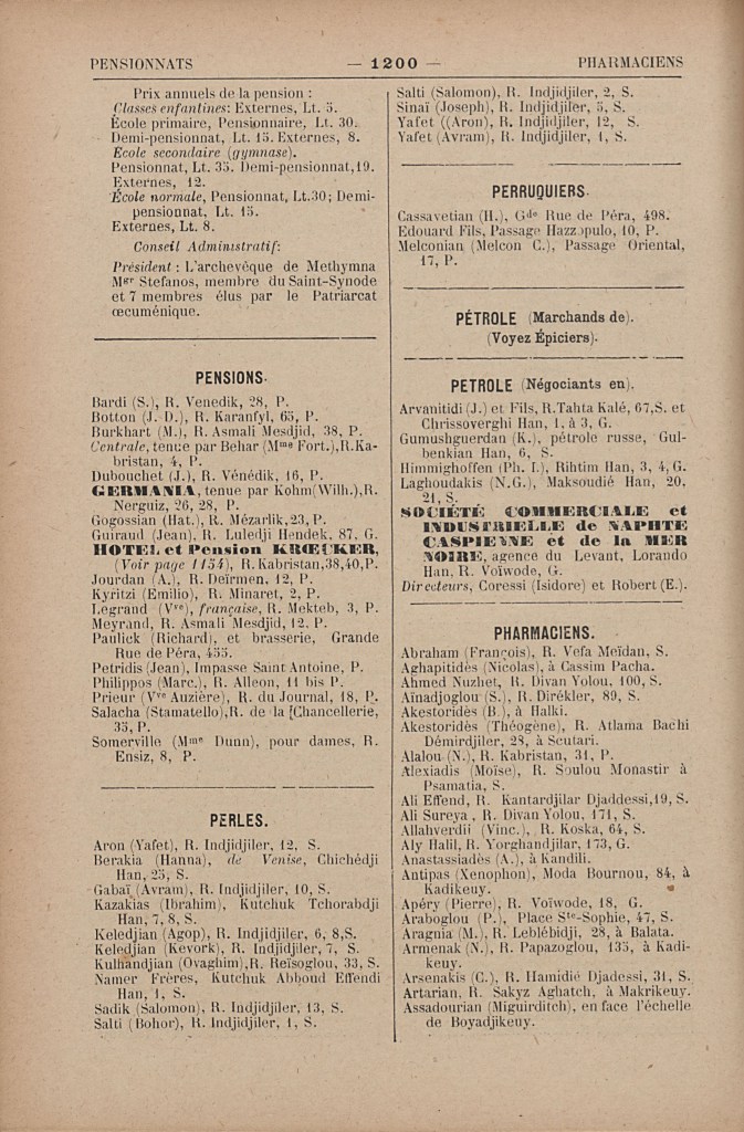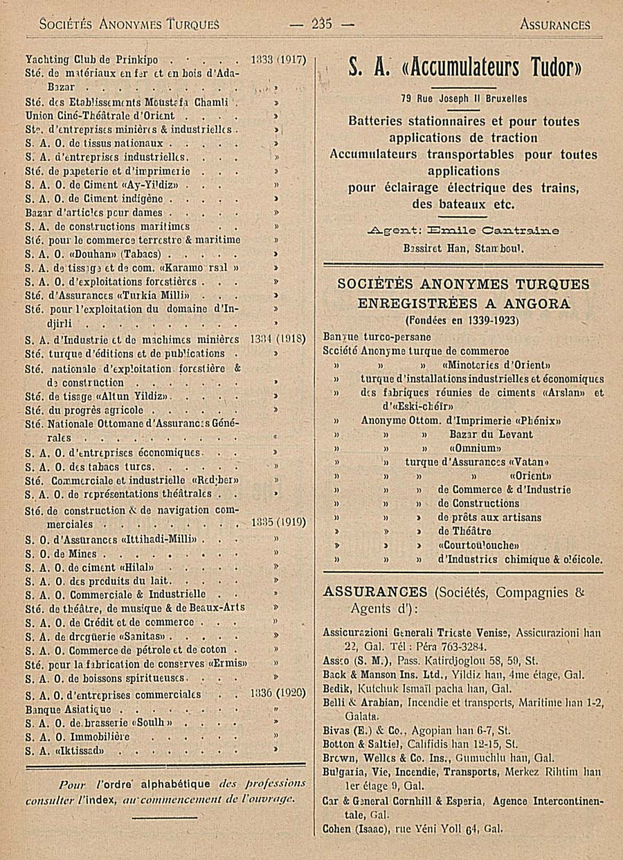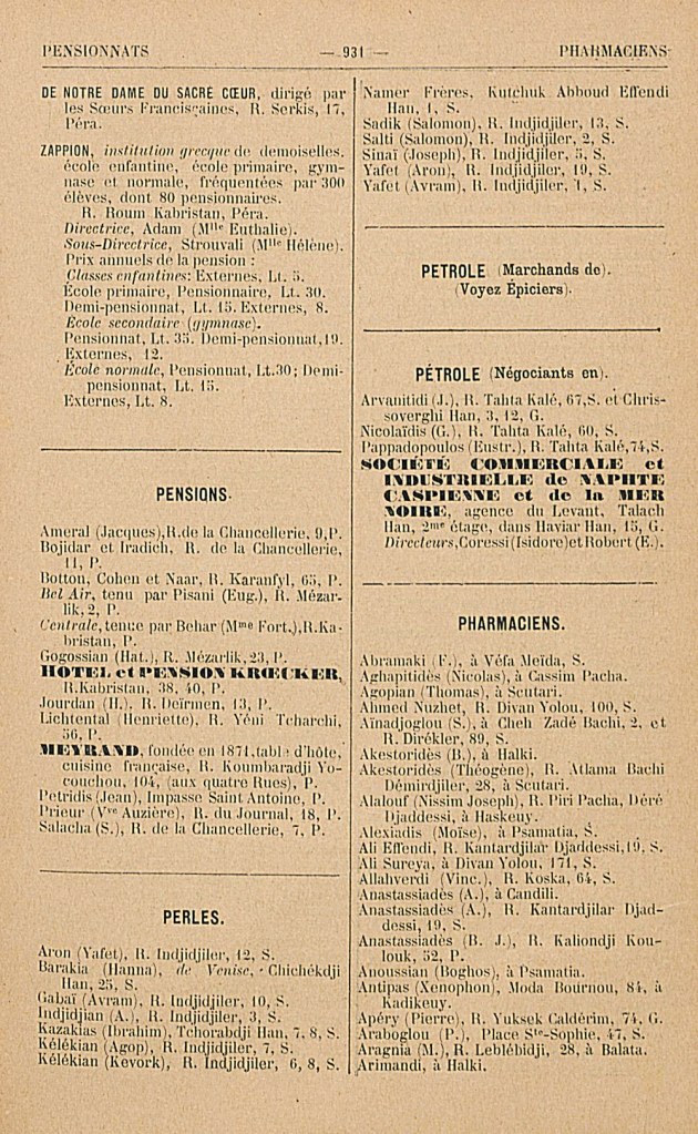 | “ | Ab. ve Lucien Matcovich | Memur | Crédit Lyonnais | Posta Sk. No. 11 Glavany Evi D. 1 Pera | |