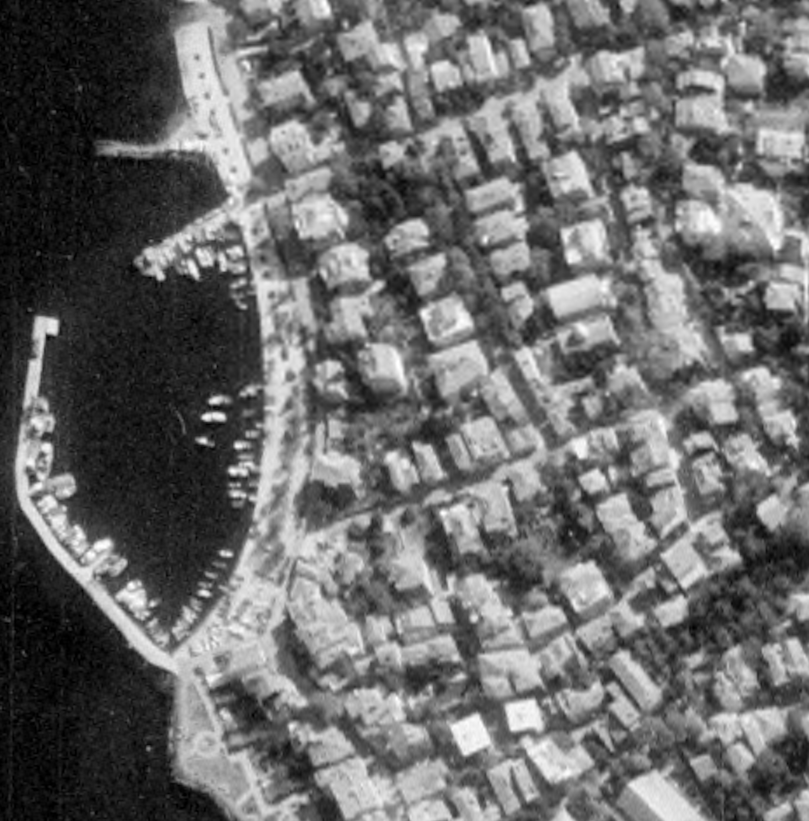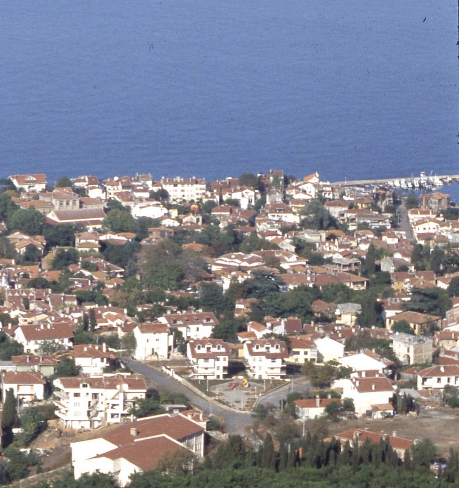 “Sahildeki aile”, “tavla partisi” ve “kahve keyfi” başlıklı diğer fotoğrafları da görünce, bu mekanın hala mevcudiyetini değil ama adını koruyan “Kumsal” olduğunu tahmin ettik. Büyükada’da deniz kenarında bir düzlük… Başka neresi olabilirdi ki? Kumsal, Büyükada’nın yeniden inşaata açıldığı dönemde molozlarla doldurulmuştu ama fotoğraftaki kıyı çizgisi izlerinden gayet iyi belli oluyordu.