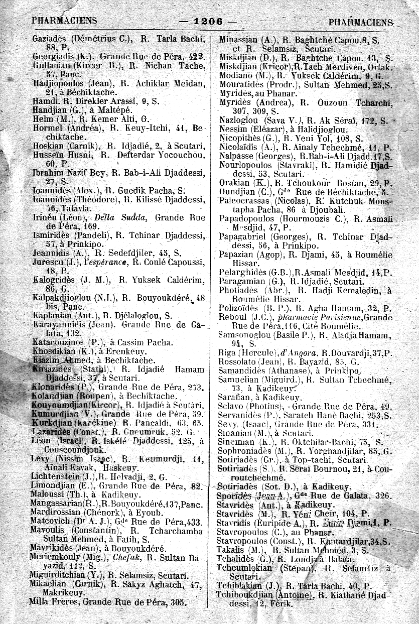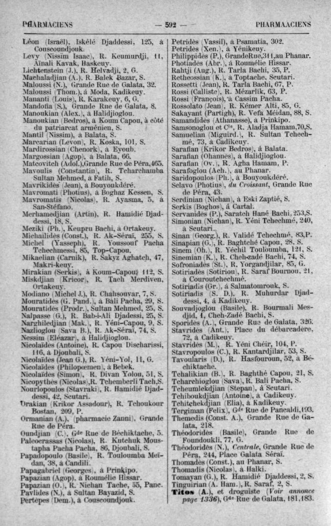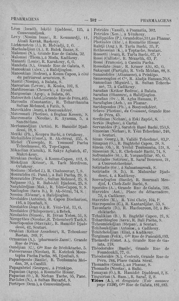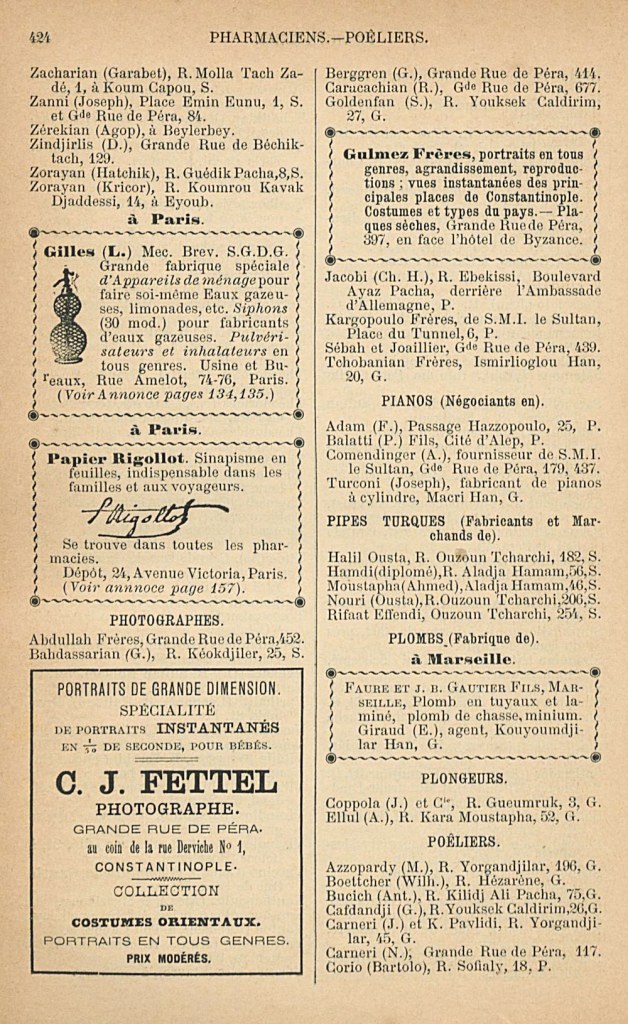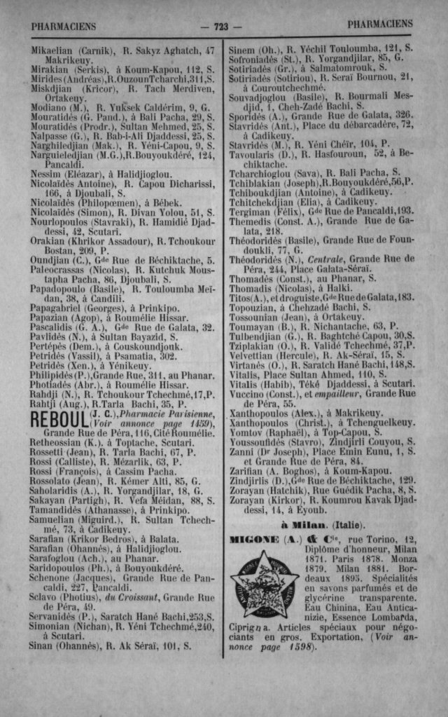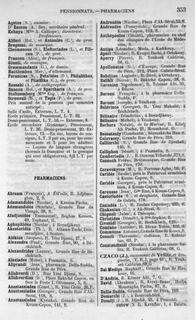 | 1892-93 | Adolphe Matcovitch | Eczacı | Cadde-i Kebir No. 465 | ||