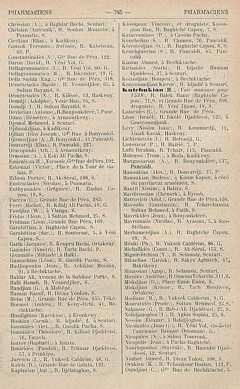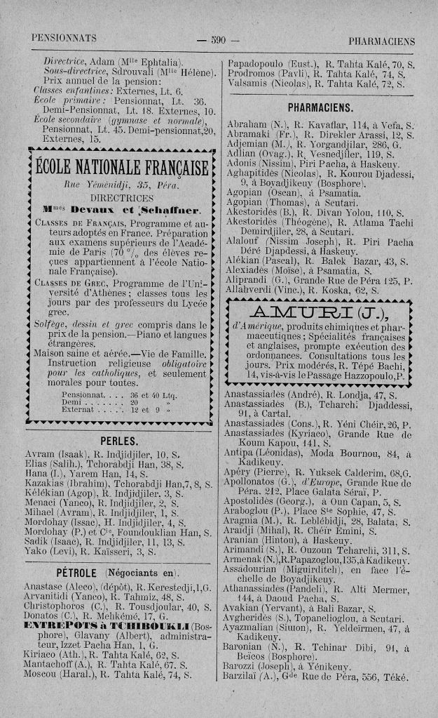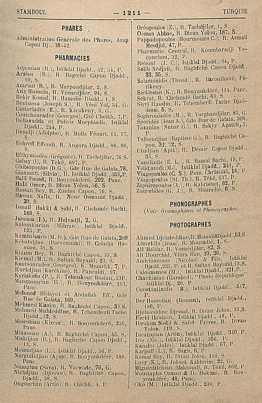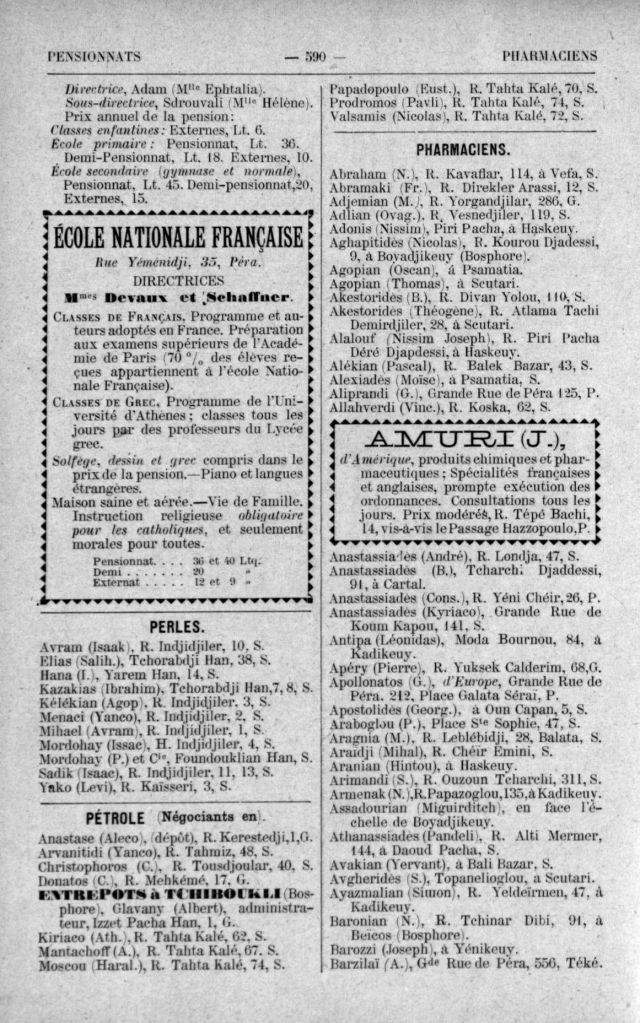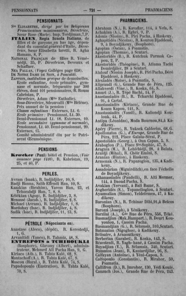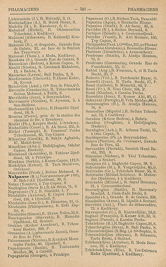 | 1892-93 | Adolphe Matcovitch | Eczacı | Cadde-i Kebir No. 465 | ||
