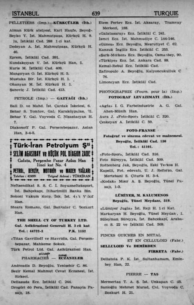 | 1929 | Silvio Giannetti | Eczane | İstiklal Cd. No. 353 Pera |