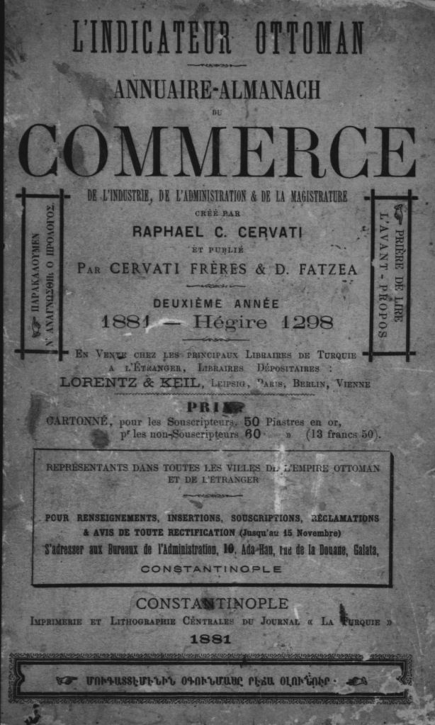 | “ | Albert Matcovich | Pera Şubesi Md. Yrd. | Banca Italiana Sconto | Cadde-i Kebir No. 355 | Kuloğlu Sk. No. 20 Pera |
