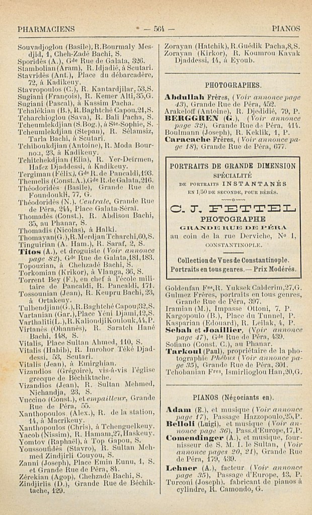 | 1894 | Adolphe Matcovitch | Eczacı | Cadde-i Kebir No. 465 | ||
