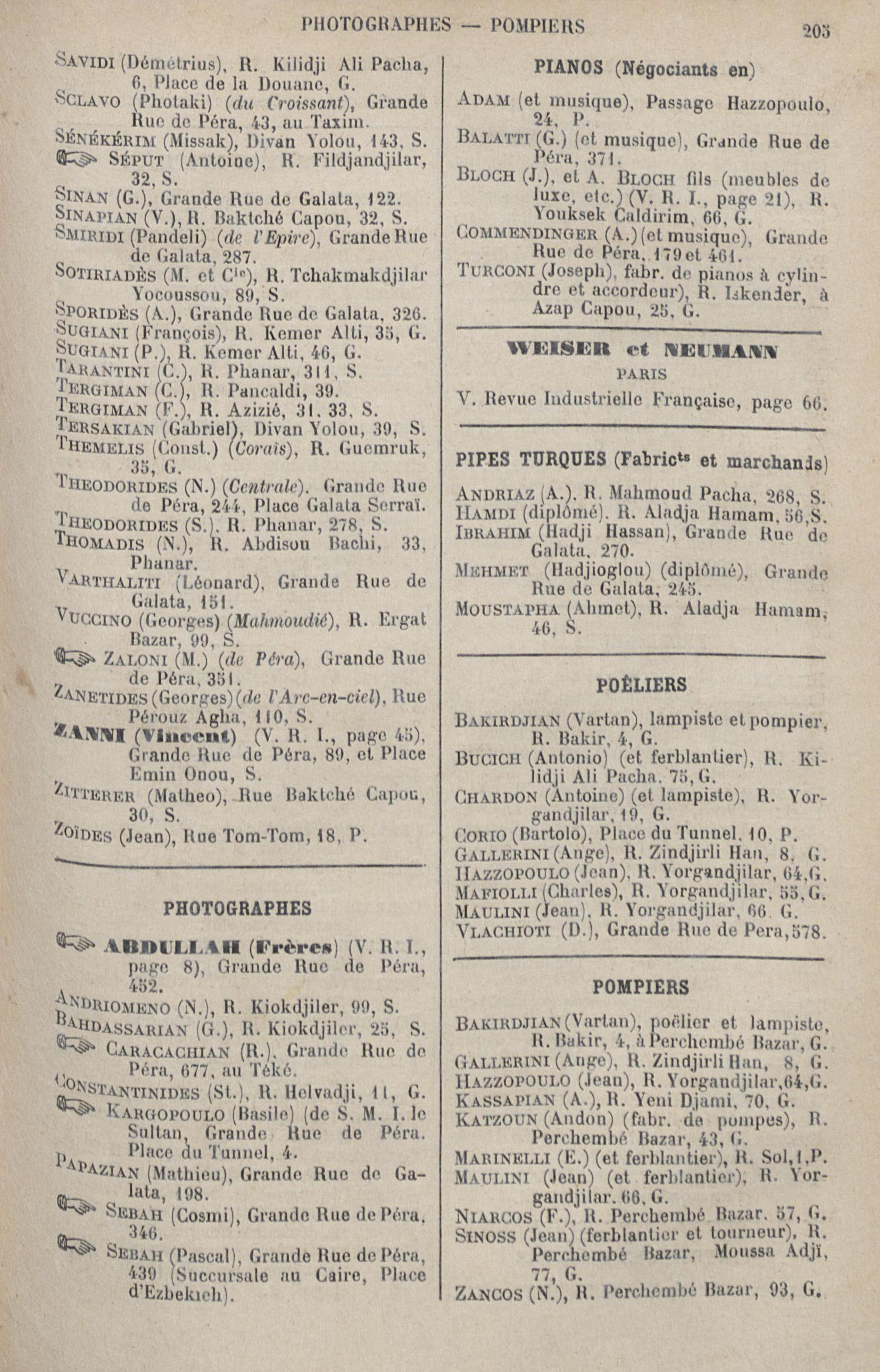 | 1883 | Adolphe Matcovich | Saksı Sk. No. 8 Pera | |||