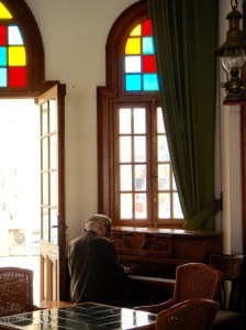 Sohbetimiz devam ederken sık sık telefon geliyor ve birileri uğruyor kitabevine. Telefonu “Kalimera” diyerek açıyor. Kimileriyle Rumca konuşuyor, kimileriyle Arapça, kimileriyle yöresel aksanlı Türkçe’siyle. Gelenler de Kalimera (Rumca, günaydın) diyor. Ayrılırken “hayırlı günler” demeleri çekiyor dikkatimi.