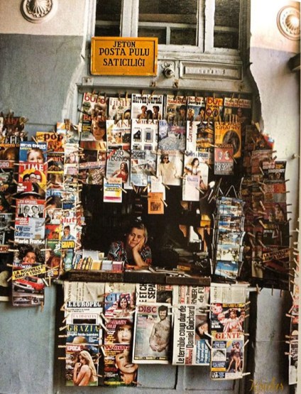 Hrisafis Ksidas’ın köşesinde gazete ve dergilerle eski zaman anıları (Fotoğraf: H. Iosifidis, 1975.)